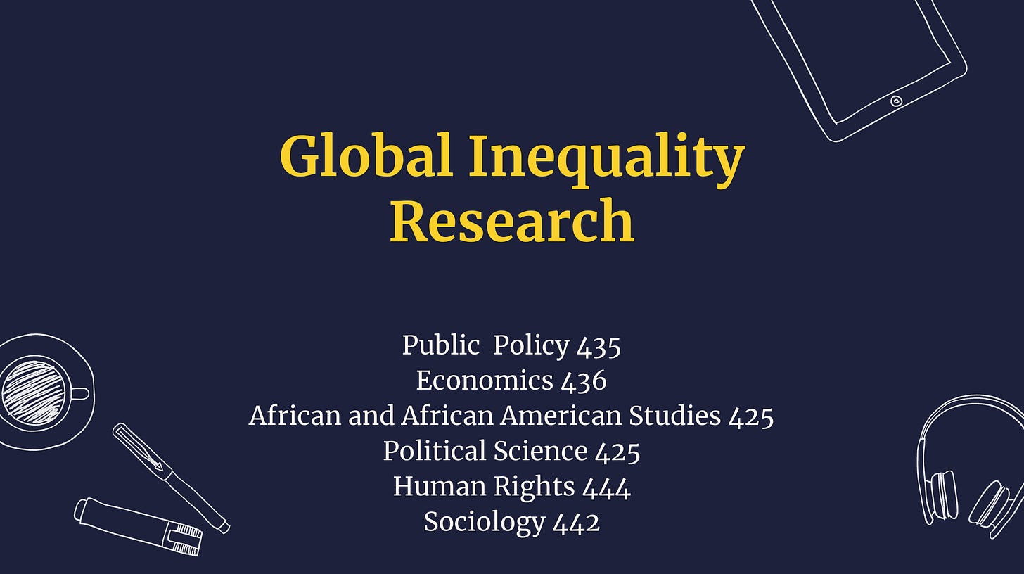 Global Inequality Research (PUBPOL 435; ECON 436; AAAS 425; POLISCI 425; RIGHTS 444; SOCIO 442)