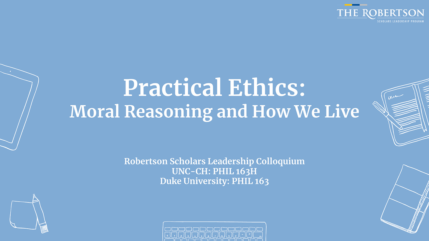 Practical Ethics: Moral Reasoning and How We Live (University of North Carolina at Chapel Hill, PHIL 163H; Duke University, PHIL 163)